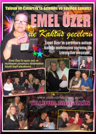 | Çınarcık Kaktüs te 36. Yıl kutlaması muhteşemdiBölgenin elit mekanlarından Çınarcık Kaktüs te, Ali Özbek in organizasyonu ile birbirinden ünlü sanatçıların katılımıyla 36.Yıl kutlaması gerçekleştirildi. [Devamını Oku...]
