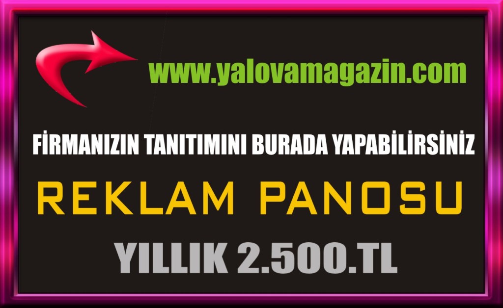 | Tanıtım ve reklamlarınız sayfamızda yayınlayabilirsinizYalova Magazin olarak firma tanıtımları ve sayfa tasarımları için yıllık olarak çok uygun bir fiyat belirledik. Reklam panolarına tıklayarak bize ulaşabilirsiniz. [Devamını Oku...]