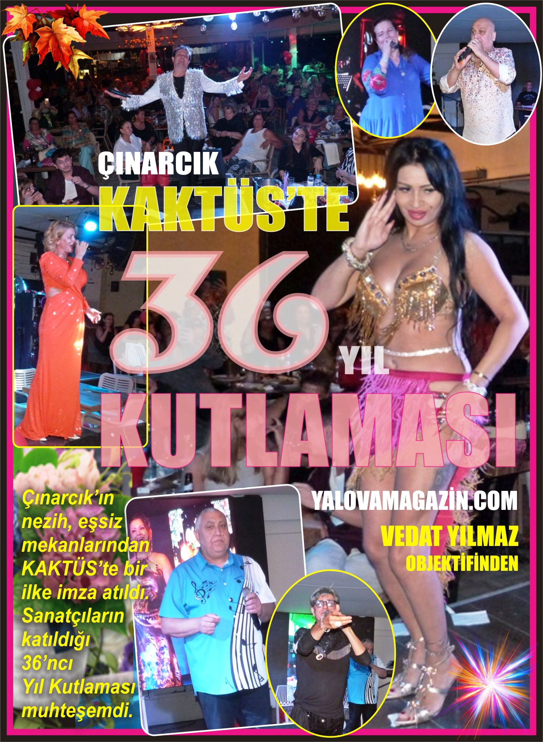 | Çınarcık Kaktüs te 36. Yıl kutlaması muhteşemdiBölgenin elit mekanlarından Çınarcık Kaktüs te, Ali Özbek in organizasyonu ile birbirinden ünlü sanatçıların katılımıyla 36.Yıl kutlaması gerçekleştirildi. [Devamını Oku...]